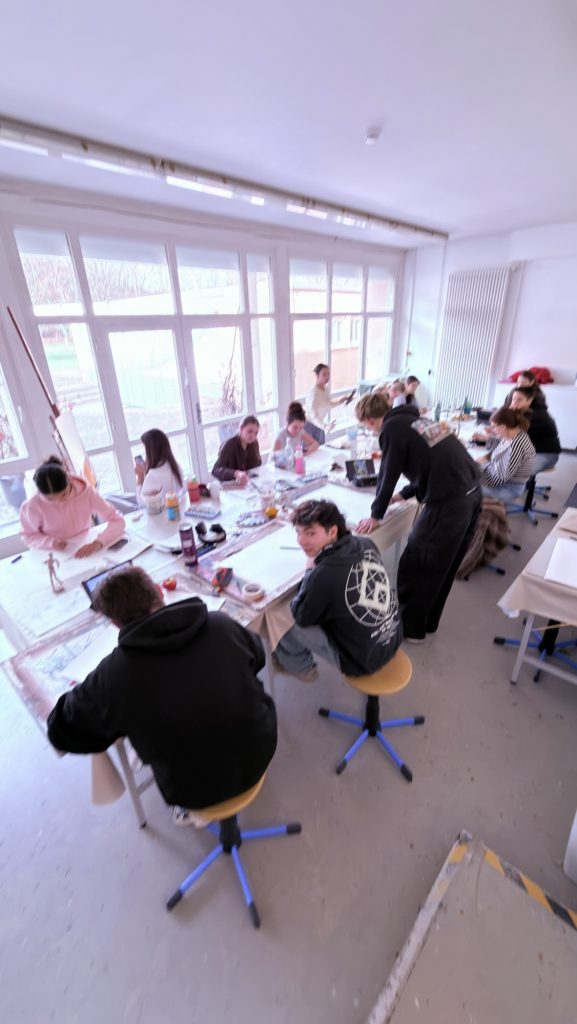 Die Leistungskurse der KS1 (Rietbrock) und KS2 (Probst) verbrachten drei Tage in den Ateliers von Schloss Rotenfels. Bis tief in die Nacht wurde gemalt, gezeichnet und an Architekturmodellen getüftelt.